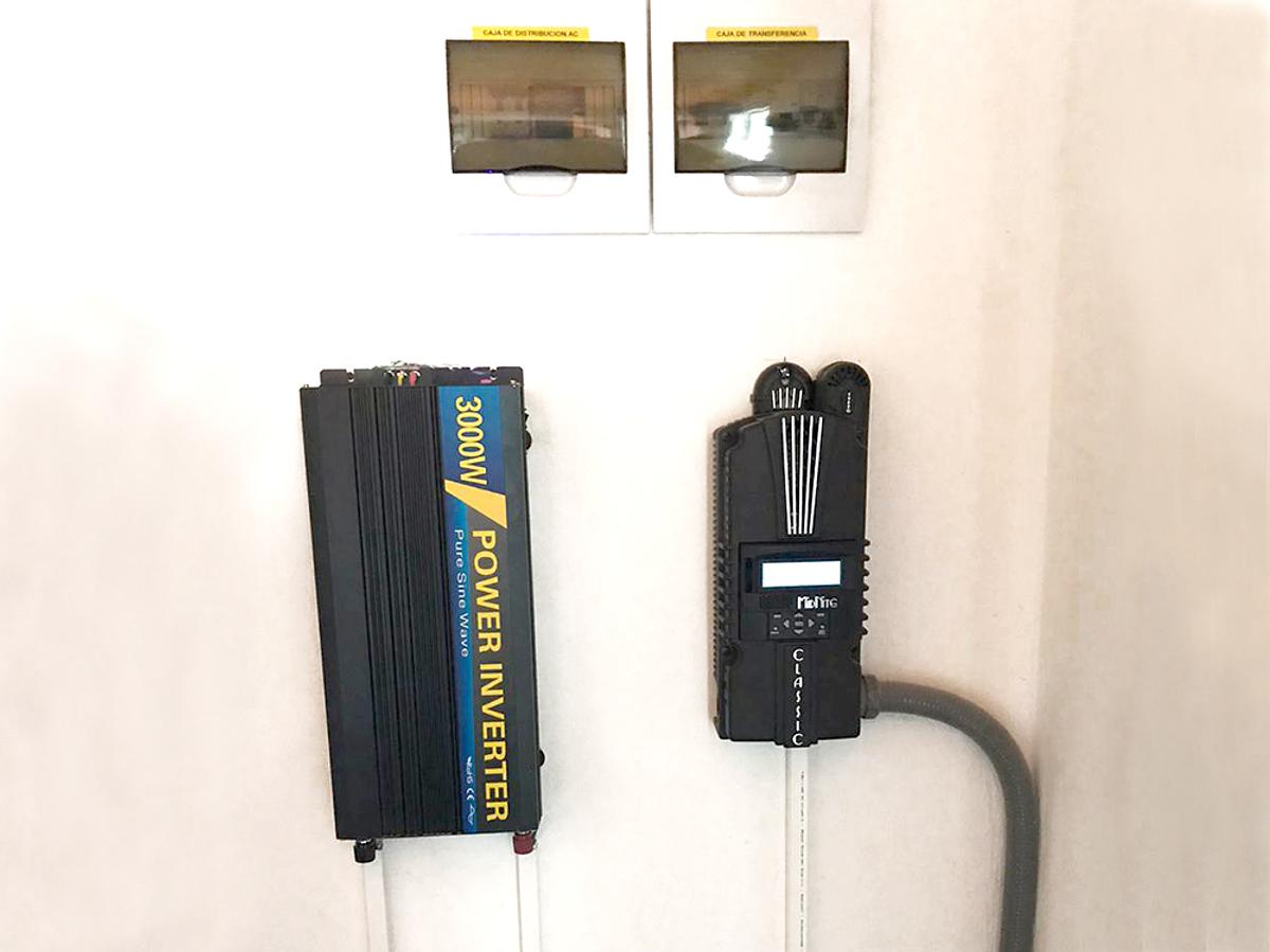 Planta solar residencial Off Grid de 2,24 kWp en Tabio, cuenta con 8 paneles solares de 280W, inversor Safe Save de 3000W, controlador de carga Midnite MPPT Clasic 250V 60A y 4 baterías de 200Ah.
