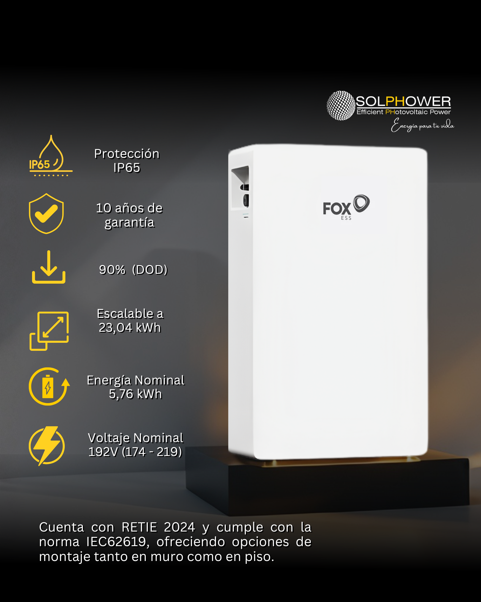 Capacidad nominal: 5.75 kWh por módulo